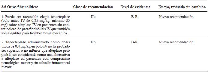 Tabla 1: Recomendaciones AHA/ASA sobre uso de tenecteplase 1.