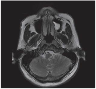 Figura 1: Secuencia T2 de resonancia magnética cerebral en corte axial