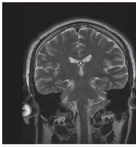 Figura 2: Secuencia T2 de resonancia magnética cerebral en corte coronal