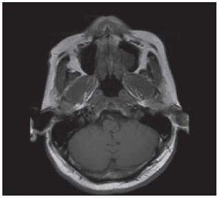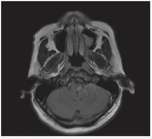 Figura 4: Secuencia T1 de resonancia magnética cerebral en corte axial