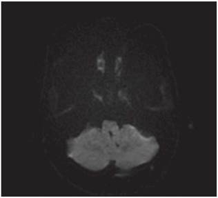 Figura 5: Secuencia difusión de resonancia magnética cerebral en corte axial