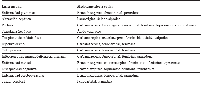 Tabla 4: Comorbilidades en las cuales conviene evitar medicamentos antiepilépticos