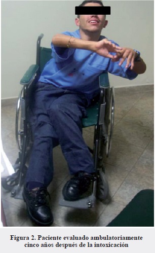 En algunos reportes de caso la afección del sistema nervioso central y periférico luego de la intoxicación ha sido reversible (14); no obstante, este paciente presentó como secuela una distonía persistente con limitación importante en sus movimientos, secuela que ha sido descrita solo en dos pacientes pediátricos (15, 16).