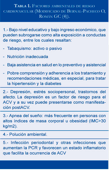 4. BERNAL-PACHECO O, ROMÁN GC. Environmental vascular risk factors: New perspectives for stroke prevention. Journal of the Neurological Sciences 2007;262:60-70.