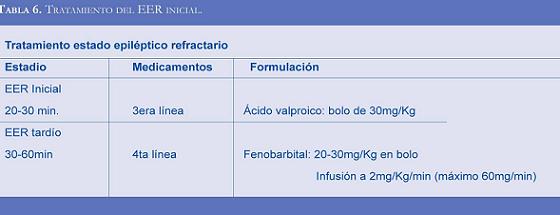El EER se define como la falta de respuesta a un medicamento antiepiléptico de primera línea (benzodiazepinas) y a uno o dos medicamentos de segunda línea (fenitoina, fenobarbital o ácido valproico) o como la actividad ictal persistente a pesar del tratamiento después de 1 a 2 horas. El EER alcanza una mortalidad hasta del 50%, de ahí la importancia de suprimir la actividad electrográfica ictal en forma exitosa (1,15,16).