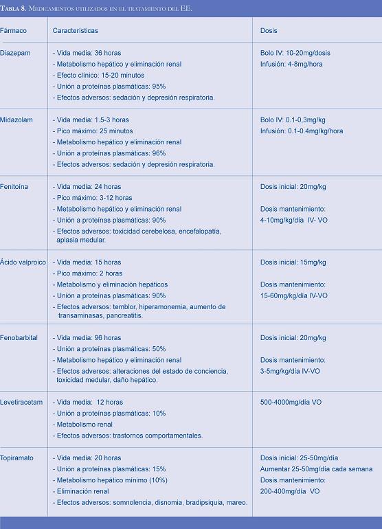 Un grupo conformado por los médicos de la UCIN y neurofisiología clínica definió la clasificación del EER y el manejo de los pacientes de acuerdo al algoritmo de la institución. La aproximación terapéutica incluyó anestesia general (infusión continua de midazolam, propofol y/o tiopental) y el uso de medicamentos antiepilépticos en forma concomitante y escalonada (ácido valpróico, levetiracetam, topiramato y fenobarbital, entre otros). Para el enfoque terapeútico se tuvieron en cuenta: edad, estabilidad hemodinámica, comorbilidad y estado de conciencia.