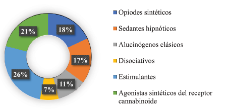 Psychoactive substances, Stimulants, Synthetic opioid receptor agonists, Synthetic canna-binoid receptor agonists, Dissociatives, Classic hallucinogens, Sedatives, Central nervous system, Neu-ropsychiatric disorders.Introducción