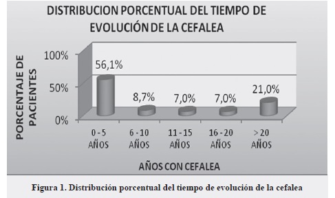 El tiempo de evolución de la cefalea está comprendido entre cero y más de veinte años (Figura 1).