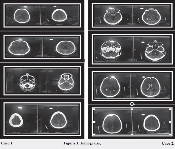 En las Figuras 1 y 2 se presentan las neuroimágenes de los casos 1 y 2, respectivamente.
