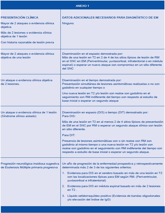 Se recomienda una revisión diagnóstica con aplicación estricta de los criterios de McDonald-2010 estandarizados por parte de neurólogos y neuroradiólogos con entrenamiento, al menos en pacientes que presenten dudas diagnósticas en el país, donde los estudios epidemiológicos continúan mostrando una baja prevalencia (14,15).