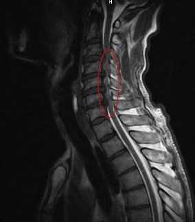 Los resultados de los estudios neurofisiológicos este caso confinaron las alteraciones a un segmento definido del sistema nervioso, con afectación tanto motora como sensitiva, poniendo en duda el diagnóstico de ELA. Las imágenes de resonancia magnética confirmaron los signos de espondilosis cervical marcada con cuatro grandes hernias discales, que provocaban gran compresión de la médula espinal cervical, tanto de su cordón anterior y motor, como del posterior y sensitivo, lo cual explicó la sintomatología presentada por el paciente.
