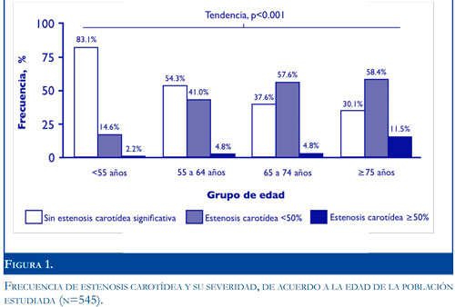 Materials and Methods: a total of 545 clinical records of patients who received carotid ultrasound in a period of 23 months were reviewed. We analyzed the prevalence and severity of CAD, and compared risk factors between patients with and without this condition.