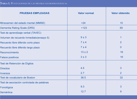 Se solicitaron paraclínicos de función renal, hemograma, ionograma los cuales fueron normales; se realizó TAC cerebral sin contraste que evidenció imágenes hiperdensas calcificas bilaterales sobre los ganglios de la base, sustancia blanca cerebral y cerebelosa. Se apreciaron signos de atrofia cortical leve, sin alteraciones en el sistema ventricular (Figura 1). Con niveles séricos de PTH en 36,5 picogramos/ dl, pruebas de función hepática (ASAT, ALAT), niveles de cortisol de la mañana y pruebas tiroideas en rangos normales. Se realizó además evaluación neuropsicológica cuyos resultados se presentan en la tabla 1.