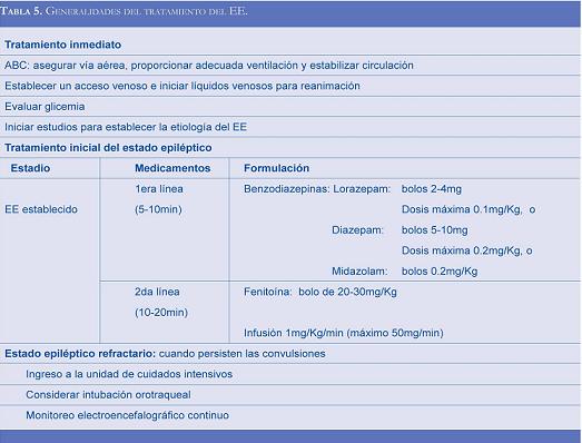 El EER se define como la falta de respuesta a un medicamento antiepiléptico de primera línea y a uno o dos medicamentos de segunda línea. Para el manejo del EER, se requiere de múltiples fármacos antiepilépticos (FAE), sedantes en dosis elevadas y a veces del uso de soporte ventilatorio y soporte vasopresor. El manejo del EER está basado en reportes de casos o experiencia de centros especializados, se recomienda la eliminación de la actividad ictal electrográfica con la inducción, por medio de sedación, de un patrón estallido-supresión; siendo una segunda alternativa, un manejo menos agresivo, sin sedación usando altas dosis de antiepilépticos, en una forma escalonada.
