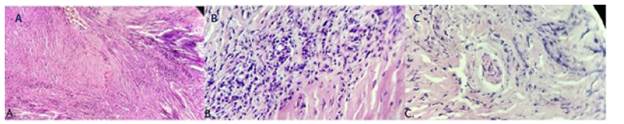 En una segunda punción lumbar, se encontraron características similares a la previa, se procesaron muestras para citología, citometría de flujo, bandas oligoclonales, nuevos cultivos y pruebas moleculares para M. tuberculosis con resultados negativos (tabla 1). Dado lo anterior, se indicó la toma de biopsia de meninges, la cual mostró fibrosis esclerosante con cambios inflamatorios linfoplasmocitarios, sin evidencia de lesión tumoral, granulomas o necrosis (figura 2). En la inmunohistoquímica, se reportaron hallazgos compatibles con enfermedad esclerosante relacionada con IgG4 (figura 3). Se indicó tratamiento con metilprednisolona endovenosa de 500 mg/día por tres días. Luego, continuo tratamiento con prednisolona de 1mg/kg/dia y azatioprina, con lo cual el paciente presentó mejoría auditiva significativa y resolución completa de los demás síntomas.